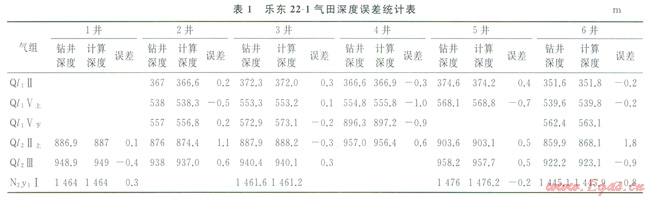 對該區(qū)速度譜有了清晰的認識后,分兩部分進行速度分析。在“模糊區(qū)”外主要解釋了高分辨率二維地震速度譜,在“模糊區(qū)”內(nèi)主要用1993年常規(guī)二維地震測線的道集和部分l996年高分辨率二維地震資料進行交互速度分析拾取。速度體的建立[6]要經(jīng)過速度解釋、數(shù)字化輸入等多個環(huán)節(jié),難免會出現(xiàn)一些差錯,為了解決這一問題,使建立的速度體更加準確可靠,采用“INDEPTH”軟件的速度監(jiān)控功能對速度資料進行了質量控制。較好地從點、線、面上找出野值或不合規(guī)律的值,經(jīng)質量控制后,消除這些野值和奇異點,使地震速度更加準確可靠,對比各井VSP速度與井旁地震速度譜速度發(fā)現(xiàn),兩種速度非常接近,雖然仍有一定的誤差,但已完全可以滿足精度要求。把經(jīng)質量控制后的速度數(shù)據(jù)進行格式轉換,用“EARTHVISION”軟件進行三維網(wǎng)格化(網(wǎng)格間距為250m×250m×20ms),再用6口井的VSP速度進行校正,獲得了準確可靠的地震速度體[10]。將該速度體轉換的深度構造圖與井點實鉆進行比較,其絕對誤差最大為l.8m,精度較高(表1)。