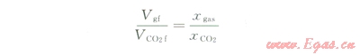 同樣可寫出井底條件下體積為CCO2f的非烴氣在地面條件下的體積VCO2s,即