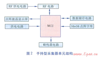 手持型采集器中MCU、供電電路、RF供電電路、RF電路、數據儲存電路的功能與無線遠傳燃氣表中各單元的功能一致。其他單元的功能為:點陣液晶顯示屏:負責顯示手持型采集器的工作信息及計量數據;16×16點陣字庫:作為點陣液晶顯示屏的字庫;蜂嗚器電路:為手持型采集器蜂鳴器提供電力,保證蜂嗚器正常工作。