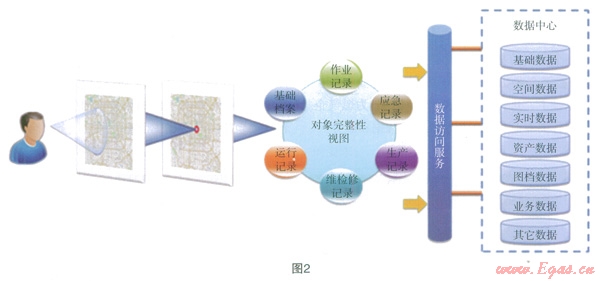 智能燃?xì)饩W(wǎng)企業(yè)私有云建設(shè)首先要解決的問(wèn)題是數(shù)據(jù)的集成。燃?xì)馄髽I(yè)運(yùn)營(yíng)數(shù)據(jù)主要包括地理數(shù)據(jù)、實(shí)時(shí)數(shù)據(jù)、管網(wǎng)完整性檔案數(shù)據(jù)、各類專業(yè)管理數(shù)據(jù)等,數(shù)據(jù)非常龐大,數(shù)據(jù)之間有著密切關(guān)聯(lián)。不同的數(shù)據(jù)存儲(chǔ)和訪問(wèn)方式可能差別巨大,如GIS地理數(shù)據(jù)和實(shí)時(shí)數(shù)據(jù),都有各自鮮明的專業(yè)特點(diǎn)。由于這些差距,智能燃?xì)饩W(wǎng)企業(yè)私有云有自己的行業(yè)特點(diǎn),數(shù)據(jù)的集成并不需要把這些完全統(tǒng)一存儲(chǔ)起來(lái),而是在多個(gè)數(shù)據(jù)中心基礎(chǔ)上構(gòu)建一個(gè)邏輯上的共享數(shù)據(jù)中心,為用戶提供對(duì)象統(tǒng)一訪問(wèn)服務(wù)。如圖2所示。