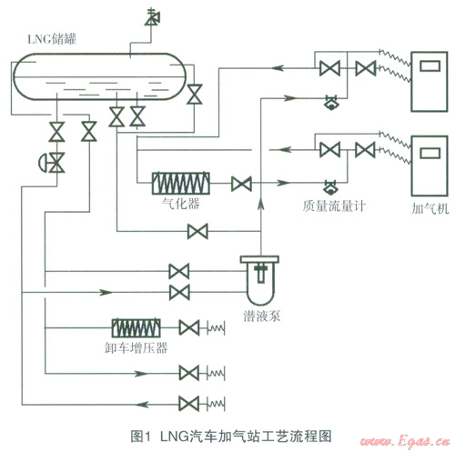 LNC汽車加氣站具有卸車、儲存、增壓、加氣等工藝過程,南此形成了相應(yīng)的T藝流程,見圖l。