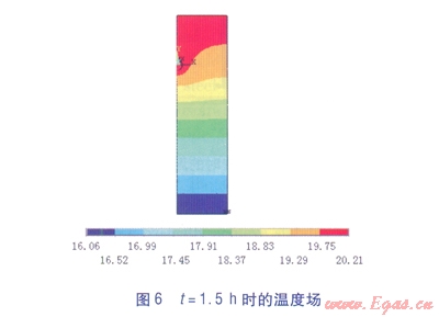 ①運(yùn)用有限元軟件ANSYS的熱分析功能,模擬得到了埋地管道氣密性試驗(yàn)過程中溫度場隨時(shí)間的變化情況:試驗(yàn)開始階段,管道溫度下降較快,30min后,管道溫度下降速度減緩,經(jīng)過1.5h后,管內(nèi)外溫度場基本達(dá)到穩(wěn)定。