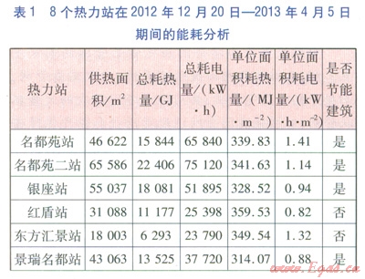 為了保證數(shù)據(jù)的可靠性,匯總了8個熱力站(均屬于即墨金源熱力公司)在2012年12月20日—2013年4月5日期間的能耗分析,見表1。從表1可知,大華正信熱力站耗熱量遠(yuǎn)低于其他非節(jié)能建筑熱力站,且不高于節(jié)能建筑耗熱量的平均值;大華正信熱力站耗電量遠(yuǎn)低于其他熱力站,耗電量約為其他熱力站的33%。