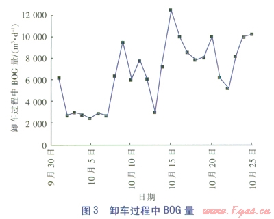 西部站自2011年l2月28日投入運行以來,運行正常。下面結(jié)合實際生產(chǎn)過程中的BOG數(shù)據(jù),對日常運行以及卸車過程中產(chǎn)生的BOG量進(jìn)行分析。