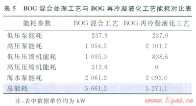 4)BOG進(jìn)入再冷凝器前進(jìn)行預(yù)冷,可在處理相同BOG量時(shí)降低再冷凝器的壓力,從而節(jié)約壓縮機(jī)的能耗,節(jié)約率達(dá)l8.2%。