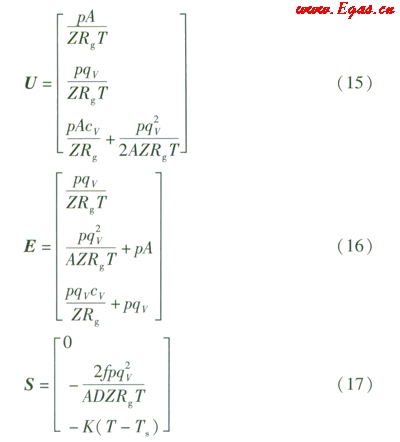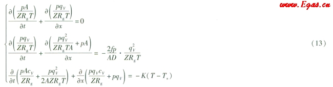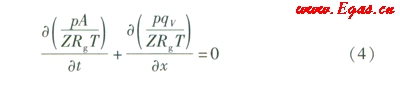 氣體在管道內(nèi)流動(dòng)的連續(xù)性方程可由式(1)表示[2]