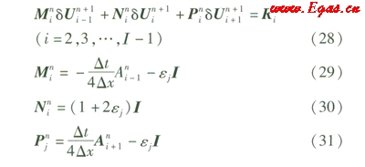 可采用Tomas開(kāi)發(fā)的TDMA算法對(duì)上面的三對(duì)角方程組進(jìn)行求解。TDMA算法可參考相關(guān)文獻(xiàn)。