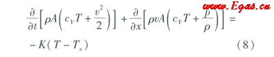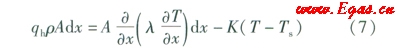 由于管內(nèi)氣體與外界只發(fā)生導(dǎo)熱,因此有式(7)成立: