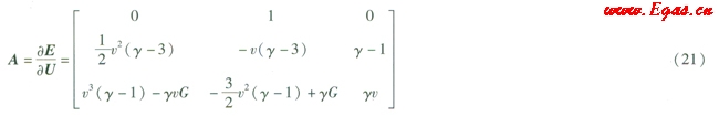 A為通量EJacobian矩陣,其表達(dá)式為式(21)
