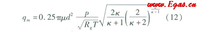 泄漏點(diǎn)處氣流處于臨界泄漏階段,管道泄漏率方程為式(12) [5]