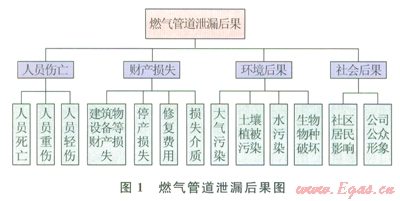 當(dāng)燃?xì)夤艿腊l(fā)生泄漏后,會給人員、財產(chǎn)、環(huán)境及社會帶來不同程度的影響。其后果就從人員、財產(chǎn)、環(huán)境及社會4方面來考慮,具體受影響因素參照圖l。