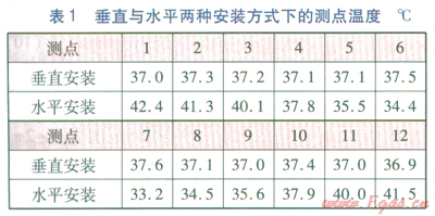 分別對(duì)垂直安裝與水平安裝的供熱管道進(jìn)行測(cè)溫,截面設(shè)12個(gè)測(cè)點(diǎn)(見圖2),12個(gè)測(cè)點(diǎn)均勻分布,測(cè)點(diǎn)與絕熱層外表面的距離為20mm,所選擇的測(cè)溫截面的絕熱材料比較均勻。垂直與水平兩種安裝方式下的測(cè)點(diǎn)溫度見表1。由表1可知:對(duì)于垂直安裝供熱管道,l2個(gè)測(cè)點(diǎn)的平均溫度為37.18℃。對(duì)于水平安裝供熱管道,12個(gè)測(cè)點(diǎn)的平均溫度為37.85℃。對(duì)于兩種安裝方式,雖然測(cè)點(diǎn)平均溫度基本一致,但是水平安裝供熱管道測(cè)點(diǎn)l的溫度最高,比測(cè)點(diǎn)7的溫度高9.2℃,這說(shuō)明水平安裝供熱管道的絕熱層熱導(dǎo)率有明顯的方向性。