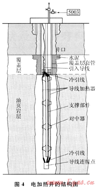 引入導(dǎo)線將加熱元件耦聯(lián)到地層表面上。加熱元件耦聯(lián)到位于地層的底層上或附近的接觸元件。接觸元件耦聯(lián)到接觸部分中的接觸器上,以使支腿間彼此電氣耦聯(lián)以形成三元結(jié)構(gòu)。三元結(jié)構(gòu)耦聯(lián)到水平連接井。該加熱器的優(yōu)點(diǎn)是電氣耦聯(lián)多樣化,較易實(shí)施,缺點(diǎn)是直線排布三元結(jié)構(gòu)不利于加熱頁巖層。 2.2 電加熱井的設(shè)計(jì)