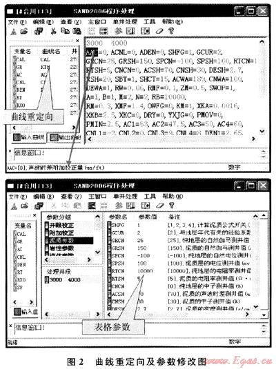 無論是文本方式還是表格方式下,均可快速得到當(dāng)前參數(shù)的交會圖[5],以便用戶快速修改處理參數(shù),提高工作效率。 2 儲層參數(shù)計(jì)算模塊