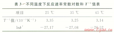 根據(jù)擴散控制界面模型擬合得出的不同溫度條件下(25℃、35℃、45℃)反應(yīng)速率常數(shù),見表3。