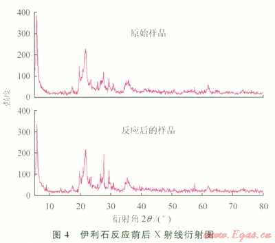 用X射線衍射儀對與pH值為4.3碳酸溶液反應(yīng)前后的伊利石礦物進行測試,測試結(jié)果見圖4。