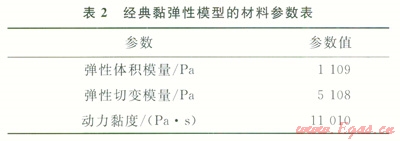 形成腔體模型后,需要對溶腔施加內(nèi)壓,通過施加法向應(yīng)力將儲(chǔ)氣庫內(nèi)壓分別設(shè)置為10MPa、15MPa、17MPa、20MPa、23MPa、25MPa和30MPa,選擇經(jīng)典黏彈性蠕變模型[8-9]計(jì)算在不同內(nèi)壓條件下溶腔不同直徑處的蠕變變形量。經(jīng)典黏彈性蠕變模型材料參數(shù)如表2所示。