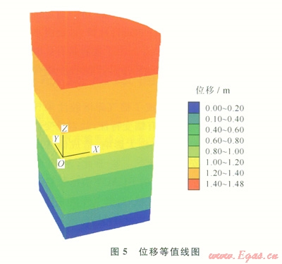 由圖4可以得出,該模型中最大不平衡力逐漸收斂至零,表示所建儲(chǔ)氣庫溶腔模型具有收斂性。由圖4、5可以看出,在建立的土體模型中,由于重力場的作用,最大位移和最大應(yīng)力分別出現(xiàn)在模型的最底部。
