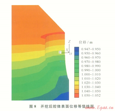利用空模型形成腔體模型,通過設(shè)置groupl為空模型進(jìn)行開挖,開挖后的模型如圖7、8所示。