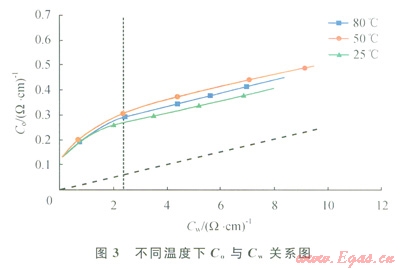 由式(3)得到25℃時(shí)的Cw為69.8(W·cm)-1,遠(yuǎn)大于2.5(W·cm)-1的界限,再次證明臺(tái)南氣田的黏土附加導(dǎo)電作用是可以忽略的。同時(shí)也說(shuō)明,該地區(qū)地層水礦化度較高,是造成電阻率絕對(duì)值低的主要原因之一。