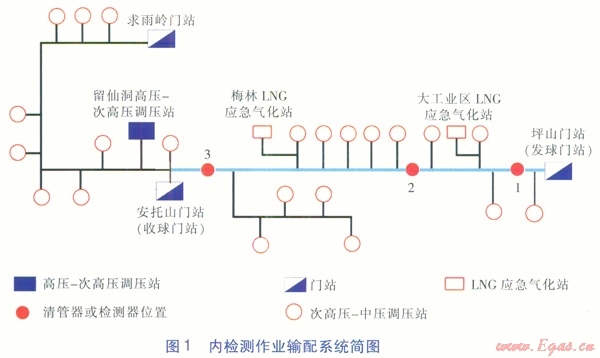 調(diào)度中心收集、匯總現(xiàn)場(chǎng)信息,計(jì)算分析清管器或檢測(cè)器實(shí)時(shí)速度,調(diào)整供氣門站、LNG應(yīng)急氣化站的流量,有效控制球速,滿足內(nèi)檢測(cè)作業(yè)的工藝要求。預(yù)測(cè)清管器或檢測(cè)器通過各分輸支線及收球門站的時(shí)間,提前通知廠站現(xiàn)場(chǎng)指揮組做好相應(yīng)操作準(zhǔn)備。通過調(diào)整清管器或檢測(cè)器的發(fā)球時(shí)間和速度,避免在供氣高峰時(shí)段關(guān)停重要的調(diào)壓站而影響下游供氣。在清管器或檢測(cè)器卡堵的應(yīng)急情況下,進(jìn)行管網(wǎng)運(yùn)行工況調(diào)整及供氣保障的氣量調(diào)度。