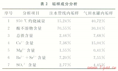 通過對(duì)垢樣進(jìn)行高溫灼燒以及濃鹽酸加熱溶解,分析結(jié)果如表2所示。