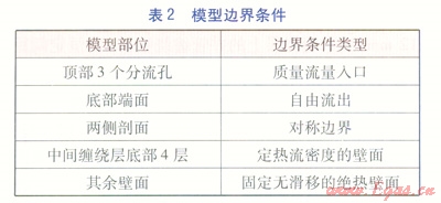 對于殼側36°物理模型,流體從頂部3個分流孔流入,從底部端面流出,兩側剖面為對稱邊界,中間纏繞層底部4列為加熱壁面,其余壁面均為固定無滑移絕熱壁面,模型邊界條件見表2,輸入的參數(shù)見表3。表3中的參數(shù)值與AUNAN的實驗數(shù)據(jù)8[180-187]相一致。