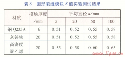 經多次實驗驗證,在燃氣低壓供氣狀況下,改變燃氣的壓力(緩沖罐內燃氣壓力),測試的K值不變,且K值受模塊壁厚影響甚微。由此得出管道裂縫流量修正系數K的取值范圍,見表4。