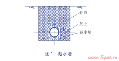 坡度為7°~l5°的陡坡:宜在管溝內(nèi)每隔l0m采用灰土回填,防止回填土流失。灰土沿管溝軸向回填長(zhǎng)度為1m灰土由石灰和土組成,石灰與土的體積比為3:7。