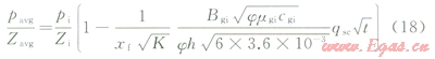 利用式(8)并結(jié)合物質(zhì)平衡方程式(9)可以得到不同時刻探測邊界內(nèi)的平均地層壓力(pavg),這是計算氣體擬時間函數(shù)的基礎(chǔ)。
