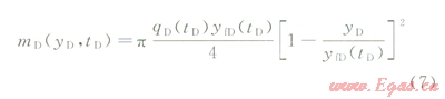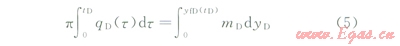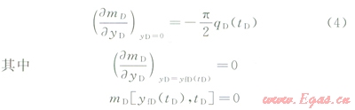由于探測邊界yfD隨時間而變化,直接求解(2)~(4)并非易事,這里采用近似求解方法。首先對控制方程(2)兩側(cè)先后關(guān)于空間變量(yD)和時間變量(tD)進行積分,利用邊界條件將偏微分方程式(2)轉(zhuǎn)化為探測邊界內(nèi)物質(zhì)平衡方程: