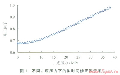 氣體具有強可壓縮性,其黏度(mg)、偏差因子(Zg)、體積系數(shù)(Bg)等都是關(guān)于壓力的強非線性函數(shù),如果直接對氣體滲流控制方程中的擴散系數(shù)進行強行近似必然會引起較大的誤差。使用擬時間函數(shù)(tg)能夠?qū)怏w滲流問題等效轉(zhuǎn)化為液體滲流問題,同時改進了“強行近似擴散系數(shù)(1/jmgcg)為常數(shù)”的假設(shè)條件,結(jié)果必然使得理論描述更接近于礦場實際情況,也方便液體研究領(lǐng)域內(nèi)成果的參考和借鑒。其中,擬時間定義為: