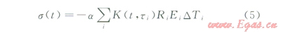 (5)對(duì)應(yīng)于第i時(shí)間段,a為混凝土熱膨脹系數(shù),1;K(ti,t)為應(yīng)力松弛系數(shù);Ri為約束系數(shù),其值與構(gòu)件長(zhǎng)高比及混凝土彈性模量比有關(guān);Ei為彈性模量,MPa;DTi為混凝土的內(nèi)外溫差,