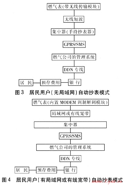 由購買氣量改為預(yù)存費用,預(yù)存費用的數(shù)值保存在燃?xì)夤镜臄?shù)據(jù)管理中心,以便根據(jù)燃?xì)鈨r格實時調(diào)整,避免燃?xì)鈨r格上漲前用戶囤氣給燃?xì)夤編頁p失。此方式綜合了國外的先進技術(shù)和我國的國情,將成為我國城鎮(zhèn)燃?xì)饩用裼脩?、商業(yè)用戶今后計量收費的發(fā)展趨勢。對于其他不適合預(yù)付費方式的城鎮(zhèn)燃?xì)庥脩?,今后發(fā)展的趨勢是自動抄表。