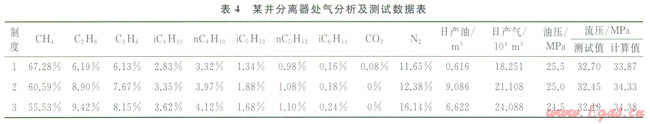 2)井筒壓力測試時氣分析數(shù)據(jù)。該數(shù)據(jù)取樣點一般為井或分離器內(nèi)氣態(tài)氣,基本不含重組分或重組分極少,不能代表該井實際流體組成。