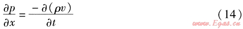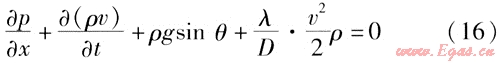 如果單位時(shí)間內(nèi)輸氣量的波動(dòng)較大,就需要考慮動(dòng)量方程中的慣性項(xiàng),上述式(7)、(8)就變成如下形式: