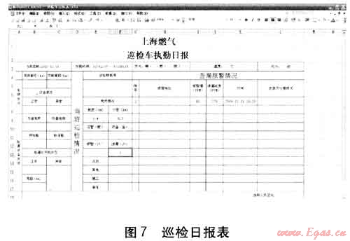 根據(jù)巡檢結(jié)果,系統(tǒng)自動進行統(tǒng)計分析,生成各類報表,例如:巡檢日報表、巡檢周報表、巡檢月報表、不能出車記錄表等。圖7為巡檢日報表。