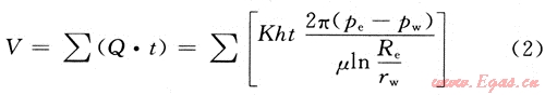 發(fā)現(xiàn)溢流關(guān)井后,地層氣體在地層壓力與井底壓力的壓差作用下會(huì)向井筒續(xù)流,續(xù)流作用的強(qiáng)弱取決于井底壓差和地層系數(shù)的大小。續(xù)流過(guò)程中地層氣體侵入體積公式可表示為:
