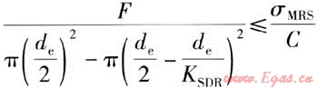按GB 15558.1—2003《燃氣用埋地聚乙烯(PE)管道系統(tǒng)第1部分:管材》3.2.4條關(guān)于設(shè)計應(yīng)力的定義:設(shè)計應(yīng)力σs指規(guī)定條件下的允許應(yīng)力,計算公式為: