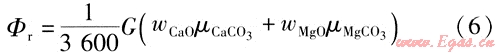 式中G——石灰石平均加入量,kg/h