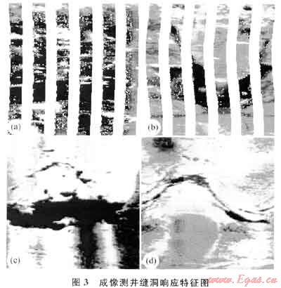 根據(jù)溶洞的分布特征及與孔、縫間的關(guān)系,可分為孔隙性溶洞和裂縫性溶洞??紫缎匀芏醇慈芏词侨芸妆贿M(jìn)一步溶蝕擴(kuò)大后形成(圖3-a),這些溶洞周圍常密集分布溶孔,孔、洞也常呈層狀分布,相互間連通性好;裂縫性溶洞即溶洞是構(gòu)造縫及少量成巖壓溶縫被局部溶蝕擴(kuò)大形成的,溶洞常沿裂縫呈串珠狀或長條狀分布,縫、洞連通性好(圖3-b、c、d)。以小型溶洞為主,占82%,中型溶洞占13%,大型溶洞占5%。在白云巖層段中、小型溶洞相對發(fā)育,而在石灰?guī)r層段大型溶洞發(fā)育。在EMI測井剖面中,大型溶洞的高度可達(dá)0.5m。在鉆井中常出現(xiàn)鉆時降低、放空、井漏顯示,如某井放空0.3m,EMI測井反映溶洞特征明顯(圖3-c)。在不同的構(gòu)造部位,溶}同的發(fā)育程度差異明顯,V3井區(qū)Zone1-Zone2的溶洞層段明顯比V1、V2井區(qū)發(fā)育,厚度為V1、V2井的1.5~2.0倍,表明從構(gòu)造的西南段向東北段溶蝕作用有減弱的趨勢。同時,據(jù)巖石學(xué)特征、溶蝕孔洞內(nèi)幾乎沒有充填以及溶孔、溶洞與裂縫的密切關(guān)系,認(rèn)為溶蝕作用是在構(gòu)造裂縫形成之后發(fā)生的。