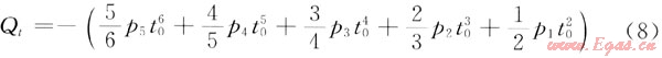 qmax=p5t5+p4t4+p3t3+p2t2+p1t+p0 (7)