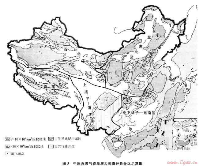 在全國范圍內(nèi),對(duì)中國頁巖氣資源潛力進(jìn)行總體評(píng)價(jià),查明中國頁巖氣資源分布,優(yōu)選頁巖氣富集有利區(qū),初步摸清中國頁巖氣資源“家底”。2011年,國土資源部油氣中心以點(diǎn)面結(jié)合的方式,部署啟動(dòng)了“全國頁巖氣資源潛力調(diào)查及有利區(qū)優(yōu)選”項(xiàng)目(圖3)。