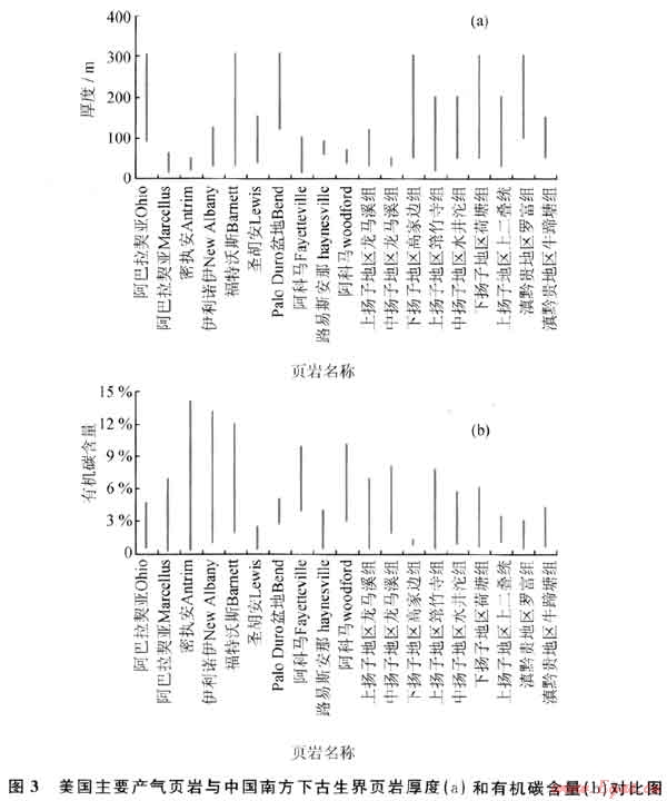 這一差別帶來的問題,一是黑色頁巖的沉積環(huán)境、厚度和展布情況等尚不十分清楚;二是時代老,經歷的構造運動復雜、熱演化史復雜,頁巖經歷了多期次的生排烴,頁巖氣成藏條件復雜;三是頁巖埋深變化較大,從出露地表到埋深超過萬米均有分布。