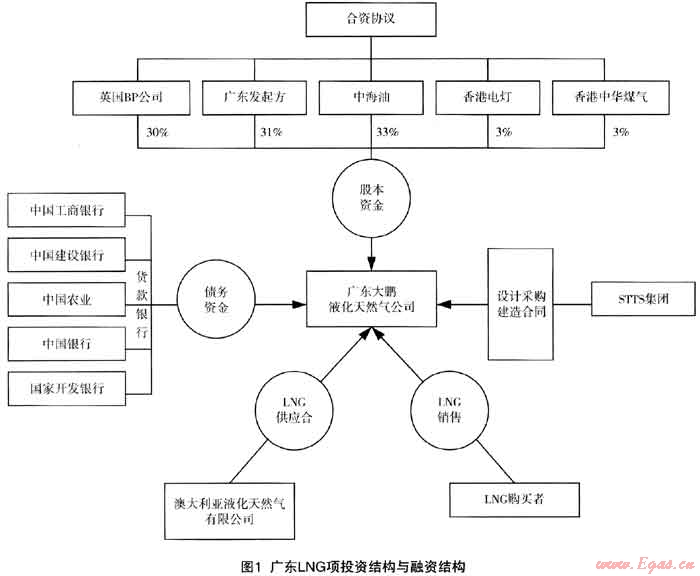 廣東LNG試點(diǎn)工程項目成功地運(yùn)用以有限追索為特征的項目融資方式,確保LNG一期工程各產(chǎn)業(yè)段項目的順利進(jìn)行,保證該工程于2006年建成投產(chǎn)。