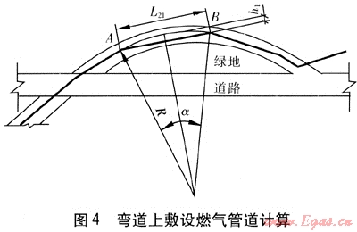 彎道上敷設(shè)燃氣管道計算見圖4。