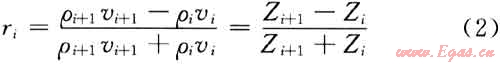 式中ri為界面反射系數(shù);ρi+1、ρi分別為界面兩側(cè)介質(zhì)的密度;vi+1、vi分別為界面兩側(cè)介質(zhì)的速度;Zi+1、Zi分別為界面兩側(cè)介質(zhì)的波阻抗。