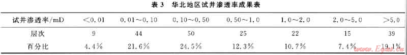 4) 華北地區(qū)超低滲透儲層占26.0%,低滲透儲層占36.8%,中滲透儲層占18.1%,高滲透儲層占19.1%,試井滲透率總體隨埋深的增加而減少。