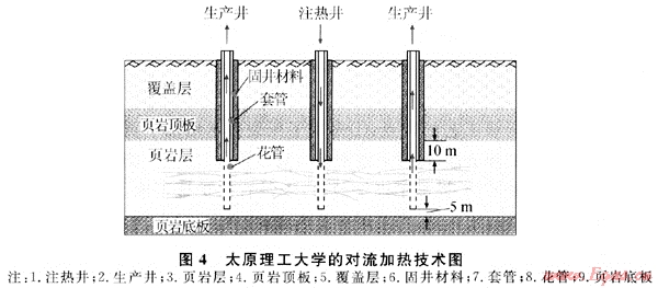 利用高溫?zé)N類氣體對(duì)流加熱油頁(yè)巖開采油氣技術(shù)是太原理工大學(xué)發(fā)明的一種原位開采技術(shù)(圖4)。