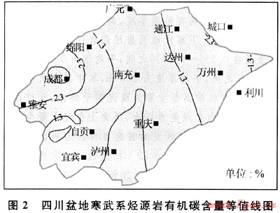 盆地內(nèi)寒武系有機碳含量一般在0.2%~9.98%之間,159個樣品的有機碳含量平均值為0.97%(圖2)。有機質(zhì)成分以腐泥組為主(占95%以上),無定形,掃描電鏡下為松軟的絮狀體,干酪根碳同位素一般為-27‰~-31‰,氯仿瀝青“A”中飽和烴含量高(40%~60%),芳烴含量低(11%~15%),瀝青質(zhì)含量低(3%~15%),飽芳比高(3~5)。表明原始有機物主要為盆地相中的低等水生生物,按Tissot等(1984)的分類屬生烴能力極強的腐泥型于酪根。